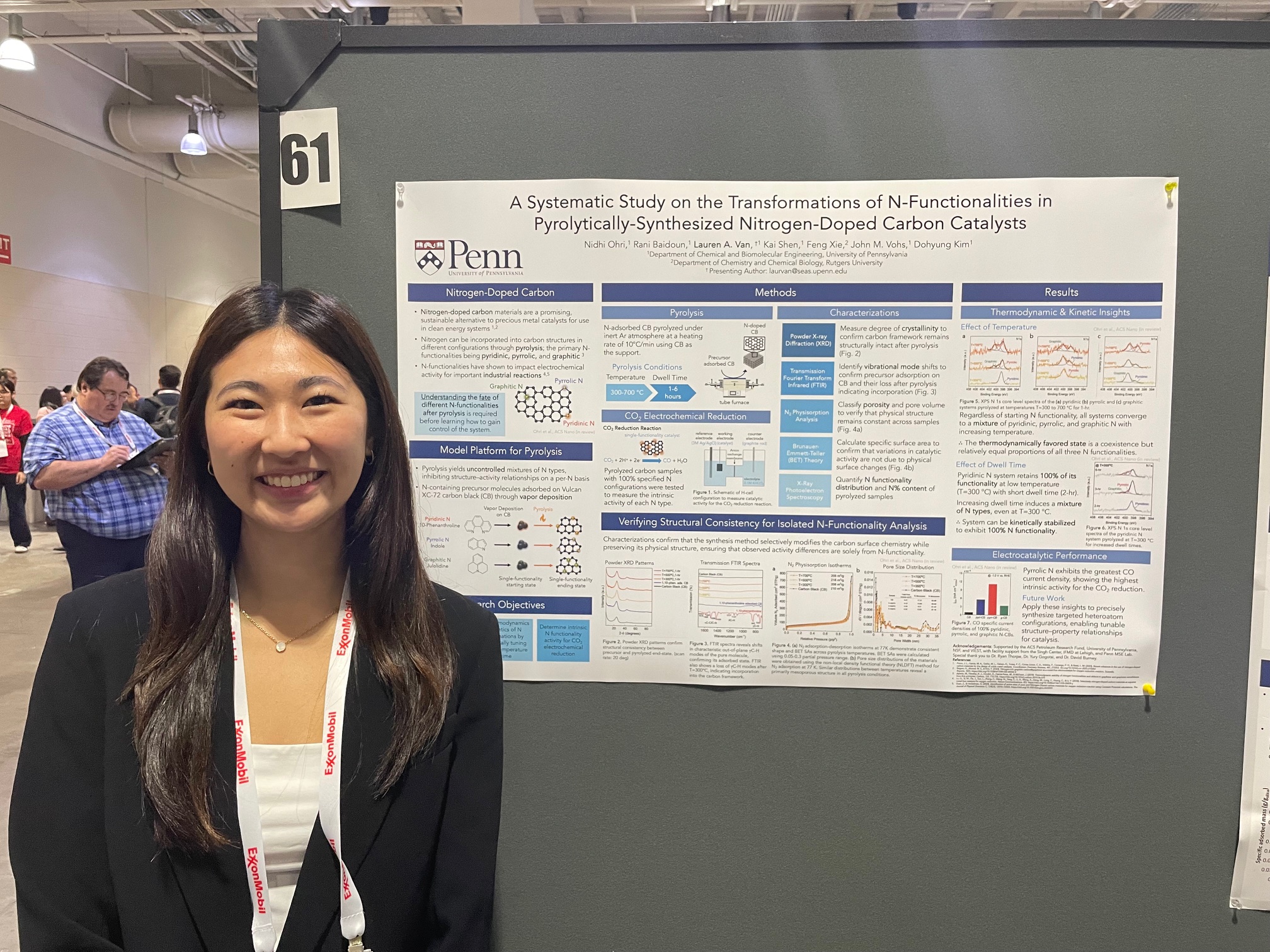 Fall 2025 Lauren at the AIChE student poster session Spring 2025 Group photo in front of Towne Fall 2024 Nidhi leading a R2R lab session to west Philly high school studentsGroup Lunch after our Annual Safety MeetingUndergraduate Research Expo (Isaac and Rani)Undergraduate Research Expo (Lauren and Nidhi) Summer 2024 with Fatou and Nidhi in the lab (1)with Fatou and Nidhi in the lab (2)Summer group photo Spring 2024 To Eugene Kim from Lab members!Group lunch at the end of Spring 2024 Fall 2023 Group photo (newly renovated labs)Group photo (Vagelos 5th floor)Group lunch at the Quain Courtyard Spring 2023 End of the semester group dinnerRani’s first electrochemistry experiment Fall 2022 in front of the Vagelos Laboratories on Penn campus where our lab and offices are located (credit: Jae Wan Lee)